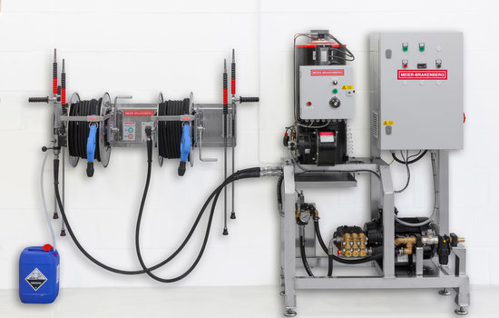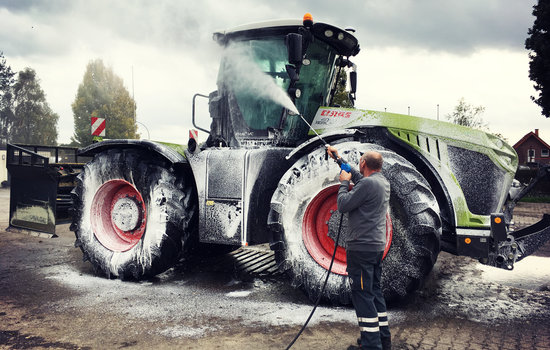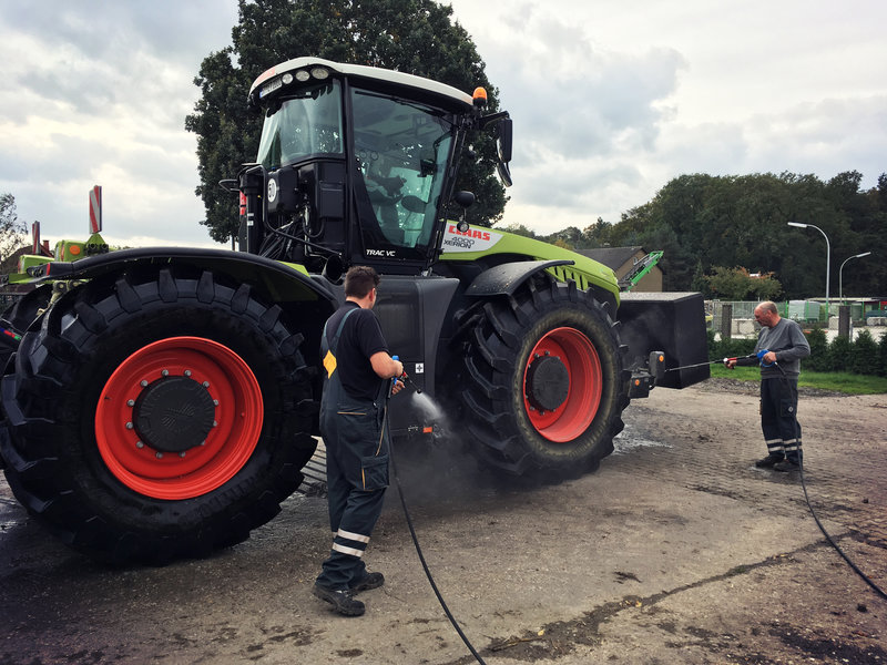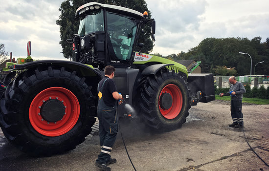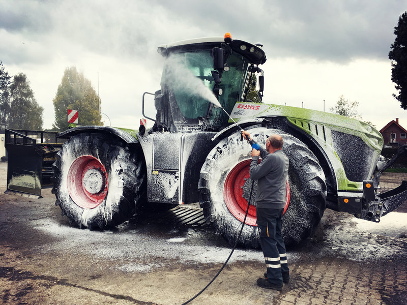 Das landtechnische Lohnunternehmen Plogmaker möchte seine Schlagkraft bei der Maschinenpflege erhöhen. Der Maschinenpark soll noch effizienter und wirtschaftlicher gereinigt werden. Auf der Suche nach einer professionellen Komplettlösung hat sich Herr Plogmaker die „Lohnunternehmereinheit“ vorführen lassen. Diese Anlage arbeitet mit einer frequenzgeregelten Pumpe mit bis zu 3000 oder 4200 l Wasser pro Stunde. Sie kann von mehreren Anwendern gleichzeitig sicher bedient werden und ist damit sehr flexibel. Die Brennereinheit sorgt dafür, dass bei Bedarf mit Heißwasser gearbeitet wird und Öle und Fette schnell gelöst werden.