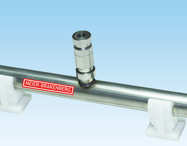 Hochdruck-Kühldüsen aus Edelstahl - montiert im Edelstahlrohr: Keine Korrosion oder Verschleiß.